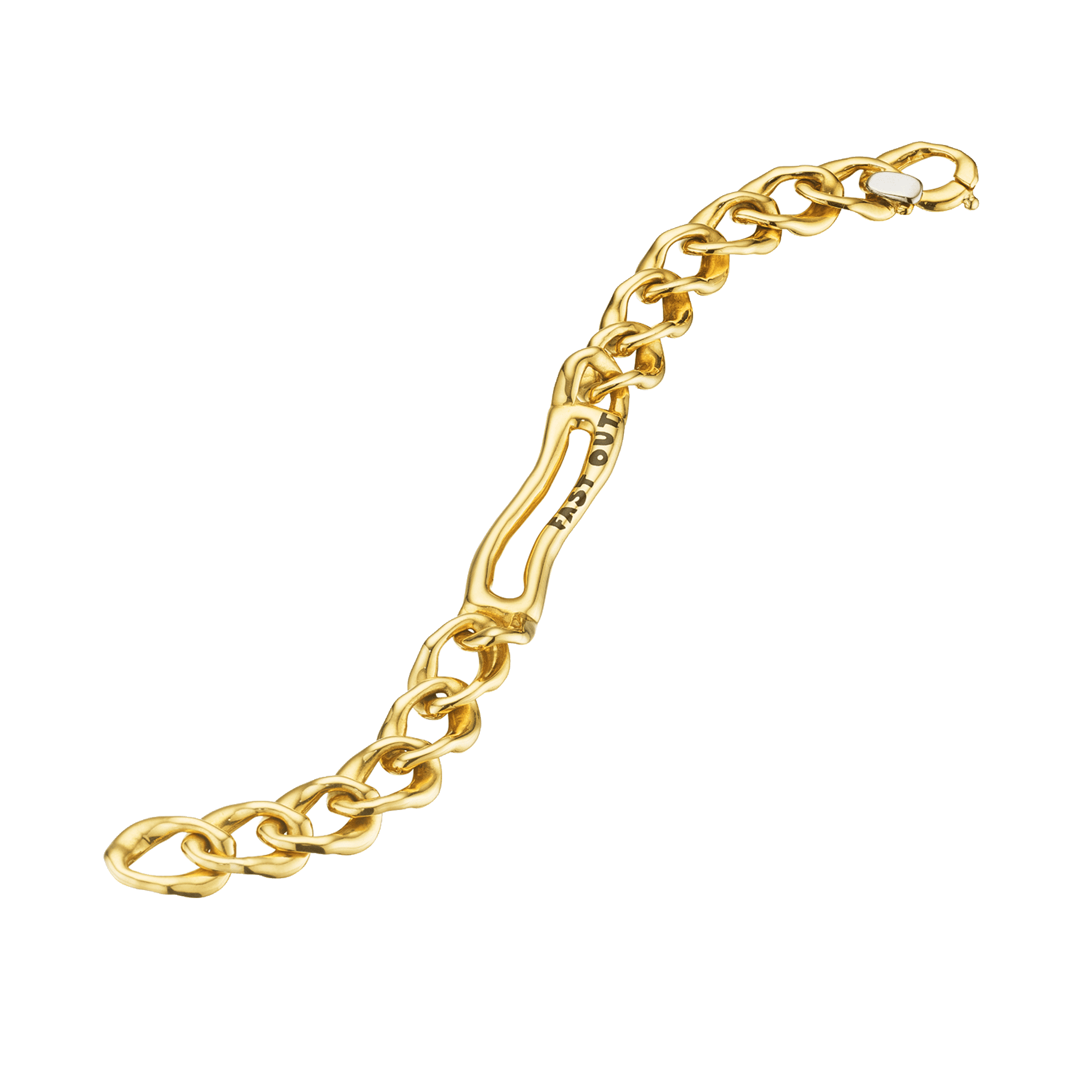 The soft and irregular shape of the links distinguishes this piece from a typical bracelet that looks cut from a spool.